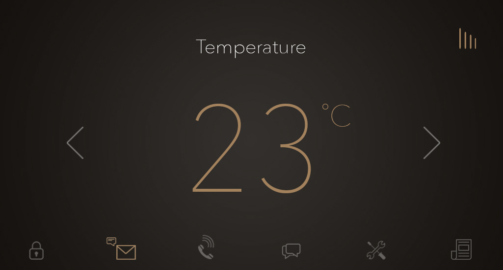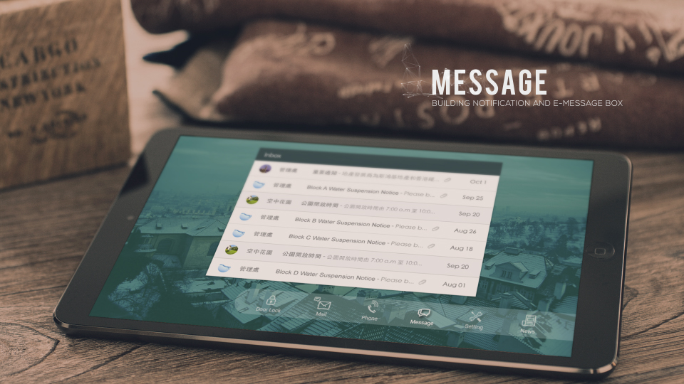 This is the third edition of Intercom smart security system. Enlarged and scrollable button panel for better user experience and gesture recognition. Bubble icon notification for displaying mailbox un-read messages. Dark blue background for enhancing color contrast in order to produce better readability.